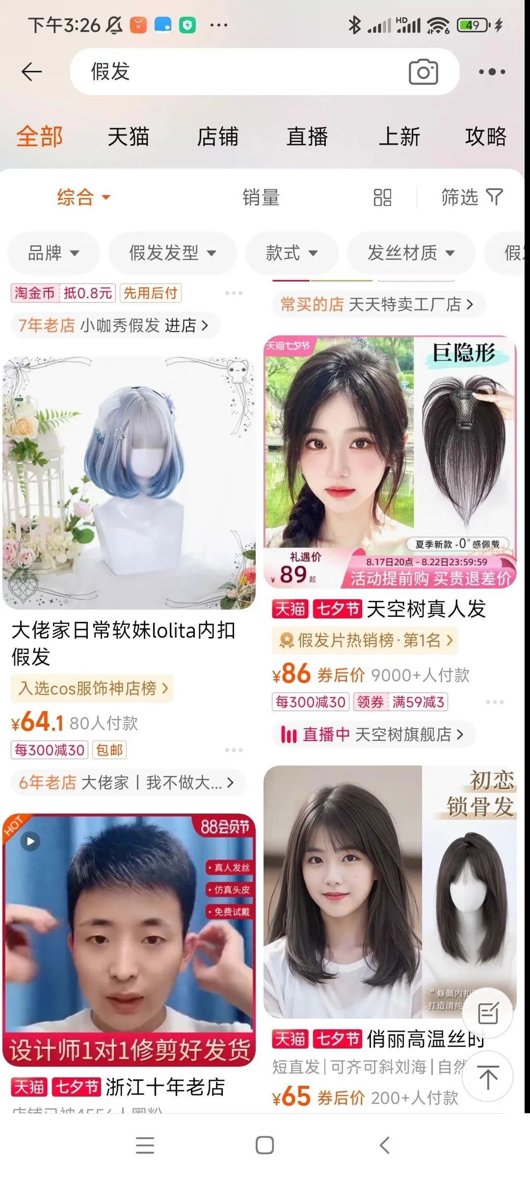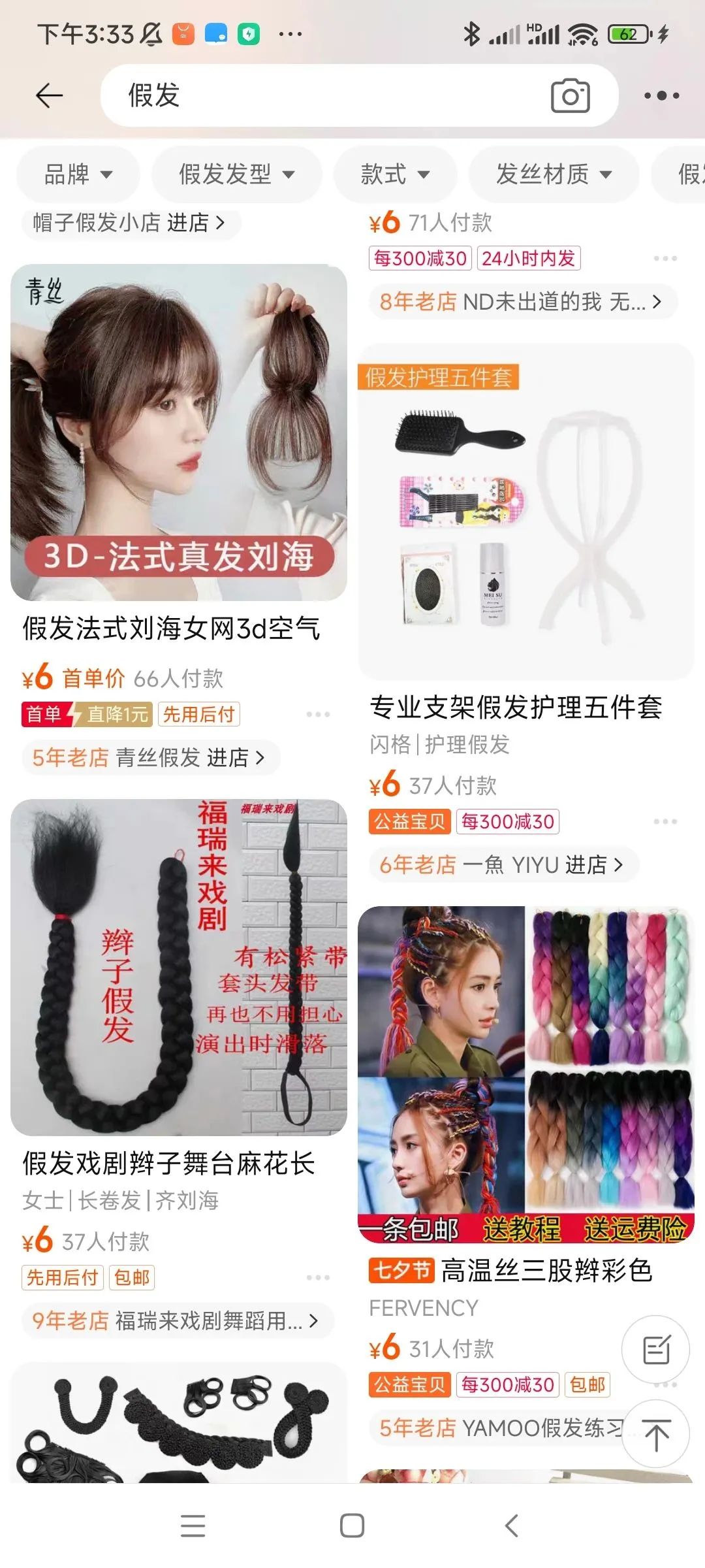 在淘宝上,一些低价的假发产品为什么没有销量呢?据说是因为淘宝屏蔽了这些低价商品的推荐,声称是为了避免不健康的价格竞争,但实际上可能是为了追求更高的佣金收益。