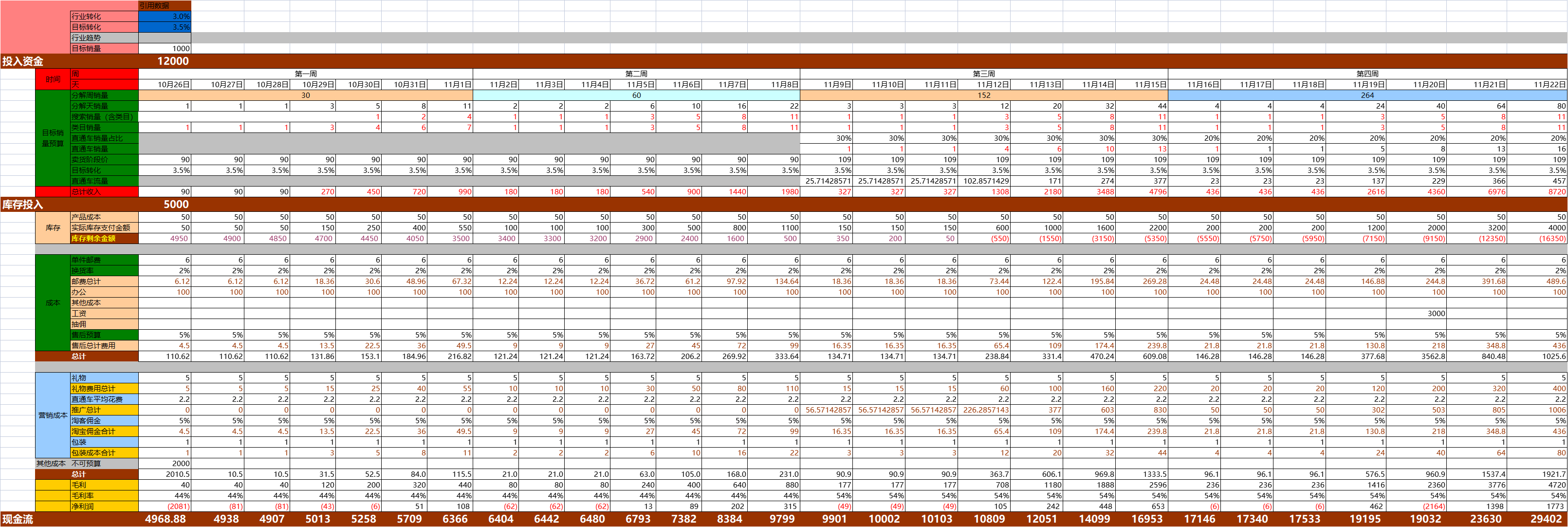 单品月度费用计划表